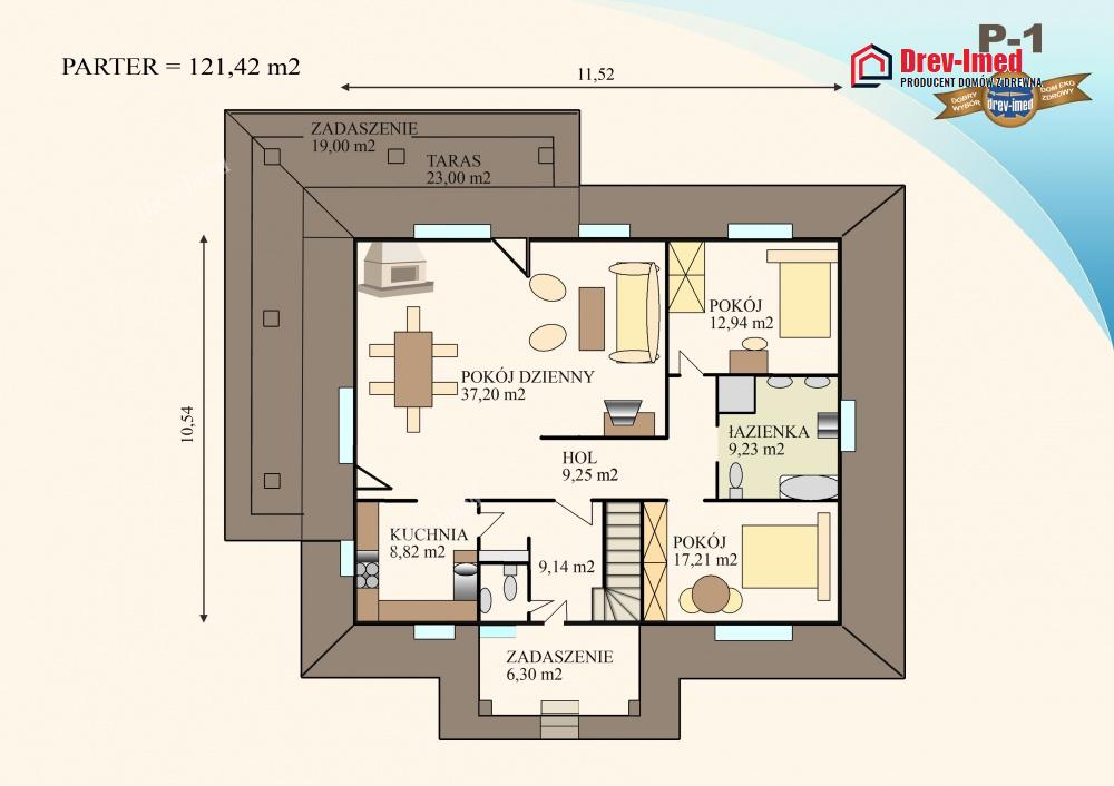Dom mieszkalny jest wykonany z drewna świerkowego lub na zamówienie z drewna modrzewiowego. Jest bardzo dobrze ocieplony wełną Gullfiber. Od wewnątrz może być wykończony suchymi tynkami lub drewnem. Od zewnątrz posiada elewacje drewnianą lub termomur różnej grubości plus dodatkowe ocieplenie uzyskując statut domu Pasywnego.